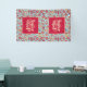 Une police tourbillonnante de calligraphie élégante et soignée en beige sur rouge dit "Joyeux Noel" qui est français pour Joyeux Noël. Le lettrage est entouré d'une forme rouge carré autour de laquelle figurines du Père Noël; un biscuit pirate en pain d'épices ; un casse-noix ; les cadeaux emballés; baubels ; étoiles ; les montres de poche et les flocons de neige apparaissent en rouge muet; moutarde et bleu sur bleu pâle. Elles sont idéales dans le cadre de votre décor de Noël pour le bureau cette saison festive.