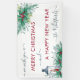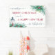 Bannière personnalisée pour souhaiter à vos invités ou, voisins et passant-bys, un joyeux Noël et une bonne année. Le design comprend des guirlandes aquarelles de feuillage hivernal traditionnel; houx, baies, mistletoe et sprigs de pin ainsi qu'une lanterne nostalgique éclairée aux bougies. Le texte est écrit en élégante typographie manuscrite et typographie majuscule en gris rouge et bleu. Le modèle est configuré pour que vous puissiez ajouter votre nom de famille.