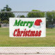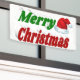 Bannière avec Joyeux Noël en texte vert et rouge 3D et casquette Père Noël. Disponible en plusieurs tailles pour intérieur et extérieur.