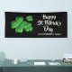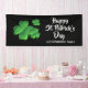 Décorez pour votre fête irlandaise avec cette joyeuse bannière personnalisée de la fête Shamrock de la Saint Patrick. Il est conçu avec un arrière - plan noir et trois shamrocks verts de plusieurs tailles sur la gauche de la bannière. Le texte est "Bonne Saint Patrick's Day" en gros caractères gras en calligraphie blanche en lettres sur la zone droite. Nom de famille ou mots customisés sur la bannière inférieure. Parfait pour ajouter une touche de décoration amusante à vos invités ! Cliquez sur l'option Personnaliser le modèle et entrez le nom.