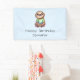 Bannière d'anniversaire avec une adorable illustration montrant une paresse joyeuse portant un t-shirt vert. Assis à jambe croisée a l'air détendu.