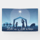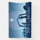 Ce magnifique dessin bleu de la crèche est une magnifique bannière religieuse de Noël pour une famille pieuse. Pour nous, un enfant naît. Envoyez des bénédictions de vacances avec ce décor pour une église chrétienne.