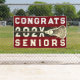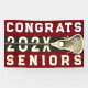 Congrats seniors and lax stick design on a maroon background. Edit text to customize for your lacrosse party event, game day banner, senior night, or graduation party.