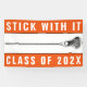 Bannière de l'équipe de crosse avec ligne de motivation et bâton de crosse sur un arrière - plan orange. Modifier le texte pour ajouter une année.