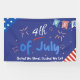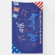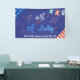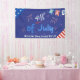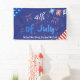 Célébrez le Jour de l'Indépendance avec cette bannière minimaliste mais festive. L'arrière - plan bleu foncé ouvre la voie à l'audacieux texte "Happy 4 juillet" en bleu clair et blanc. Des illustrations minimalistes de pétards et d'étoiles en rouge, blanc et bleu apportent une touche de fantaisie. Des bouts suspendus avec les lettres "U", "S" et "A", ainsi que des sections triangulaires avec étoiles et rayures, rendent hommage au drapeau américain. Ce design est un parfait équilibre entre simplicité et patriotisme, ce qui en fait un choix idéal pour votre décor de fête 4 juillet.