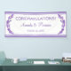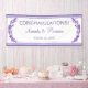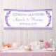 Ajoutez cette bannière de réception de mariage Lavender Breeze à vos accessoires Mariages. Conçu avec le texte : FÉLICITATIONS, les prénoms et la date Mariage de la mariée et de la mariée, ainsi qu'une garniture florale de lavande, cette bannière peut être personnalisée, en utilisant notre modèle facile. N'oubliez pas de voir toutes les pièces de cette collection de papier à lettres Mariage floral de Lavender Breeze. Bon appétit !