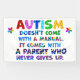 Message inspirant de "AUTISM ne vient pas avec un manuel. Il vient avec un parent qui ne se lève jamais" pour soutenir les fiers parents autistes.