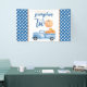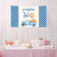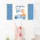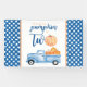 Notre petit citrouille a deux ans. Bannière de deuxième anniversaire avec citrouille aquarelle et bleu plaid et camion bleu.