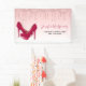 Un design moderne et tendance sur une bannière, pour les entreprises à la mode. L'arrière - plan a une image de gouttes de parties scintillant rose étincelante, le long du sommet. Le reste de l'arrière - plan est un délicat dégradé de couleur rose pastel. Une paire de stilettos roses à talon élevé ajoute une ambiance design et à la mode.