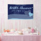 Bannière bleue de baby shower comportant les coeurs mignons et la couleur personnalisable d'arrière - plan.