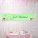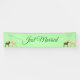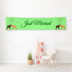 Cette étonnante bannière présente un cerf mâle et femelle qui ressemble à un couple amoureux. Le cerf mâle (buck) est brun foncé et a de grands bois, le cerf femelle (doe) est brun pâle avec des taches blanches. Il y a un coeur au-dessus du cerf en fleurs marguerites blanches et en beignets jaunes. Il y a du texte personnalisé dans le coeur pour que vous puissiez inclure les initiales du couple. Ce design est parfait pour les mariages, les anniversaires et les célébrations de la Saint-Valentin.