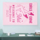 Apportez une touche de charme et d'humour à votre soirée de bachelorette spa avec cette bannière de bienvenue. Doté d'un design fantaisiste, les jambes de femmes dessinées à la main et portant des pantoufles confortables, entourées de mousseux, et dressées contre un arrière - plan rose doux.