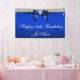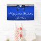 Le bleu assez royal et argentent n'importe quelle bannière d'anniversaire personnalisée par âge avec une image graphique plate des paillettes argentées et arc de bleu royal avec le texte blanc.