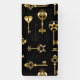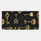 Seamless pattern of antique, gold and silhouette keys on black background.