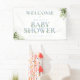 Une élégante bannière de bienvenue en baby shower ornée d'un joli lettrage bleu poussiéreux. Conçu par Thisisnotme©