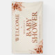Un élégant panneau de bienvenue au baby shower d'automne orné de jolies lettres à fleurs rustiques en terre cuite. Conçu par Thisisnotme©