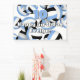 This volleyball themed birthday party banner is fully customizable and features randomly arranged light blue, black and white volleyballs, upon which you can personalize your custom message and the child's age - by katz_d_zynes