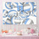This volleyball themed birthday party banner is fully customizable and features randomly arranged light blue, gray and white volleyballs, upon which you can personalize your custom message and the child's age - by katz_d_zynes