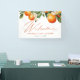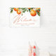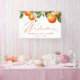 La bannière de Baby shower Little Cutie Orange Clementine présente un beau bouquet d'oranges aquarelles et de fleurs ainsi qu'un élégant type de calligraphie.