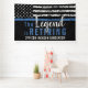 Ce design présente un drapeau de la force de police avec des bandes noires et blanches, ainsi qu'une bande de la ligne bleue mince. Le texte "La légende prend sa retraite" est situé au-dessus du nom personnalisable de l'agent des forces de l'ordre, du shérif, du capitaine ou du chef qui part à la retraite. Célébrez ce jalon avec style !