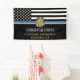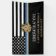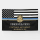Ce design présente un drapeau de la force de police avec des bandes noires et blanches, ainsi qu'une fine bande bleue. Personnalisez avec le nom de l'agent de la force publique, du shérif, du capitaine ou du chef qui prend sa retraite ou est diplômé. Une excellente façon de dire félicitations au nouveau retraité ou diplômé pour sa retraite ou sa graduation de l'académie de police.