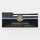 Ce design présente un drapeau de la force de police avec des bandes noires et blanches, ainsi qu'une fine bande bleue. Personnalisez avec le nom de l'agent de la force de l'ordre, du shérif, du capitaine ou du chef qui prend sa retraite ou est diplômé. Une excellente façon de dire félicitations au nouveau retraité ou diplômé pour sa retraite ou sa graduation de l'académie de police.