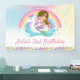 Sympa sirène et Rainbow Unicorn Pool Party Welcome Backdrop Sign, avec une jolie sirène, mignonne monocoque floatie et un ciel arc-en-ciel fantaisiste. Personnalisez cette toile de fond avec votre propre libellé facilement et rapidement, appuyez simplement sur le bouton customiser pour réorganiser et formater le style et le placement du texte. Design exclusif (c) Le Happy Cat Studio.