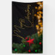 Cette magnifique bannière de la fête de Noël Joyeux présente un script manuscrit doré moderne sur des lumières scintillantes, à côté d'un arbre de Noël festif décoré d'ornements rouges et verts. Customisez cet élégant décor de vacances avec script personnalisé sur le ciel noir de nuit.