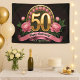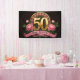 Célébrez une histoire d'amour en or avec cette superbe bannière pour le 50e anniversaire de mariage. Le design présente un magnifique "50" orné en or, encadré par un cercle de délicates roses roses. De part et d'autre du nombre se trouvent deux pivoines roses luxuriantes et vibrantes, avec un ruban de satin rose gracieusement drapé en dessous, prêt à être personnalisé. Cette bannière est le fond idéal pour une célébration de milestone.
