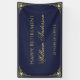 L'arrière - plan est bleu marine. Il y a un cadre doré avec des décorations vintages en faux or dans les coins. Le nom est écrit dans un élégant script calligraphique, le reste en casquette. Tout le texte est doré. Les décorations vintages et ornées dans les coins sont basées sur une reliure de livre française antique, par Georges Mercier (1885-1939) - Madame de Maupin par Theophile Gautier, édition 1911, désormais dans le domaine public.