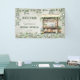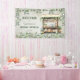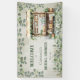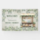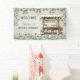 Magnifique forêt et design de pancarte horizontal "Bienvenue" avec du eucalyptus vert sauge et boutique du Marché fermier. L'arrière-plan rustique vieilli combiné avec le support en bois chargé de verdure et l'eucalyptus suspendu environnant rappelle un marché italien ou campagnard à ciel ouvert.