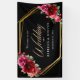 Élégante bannière d'accueil chic rouge bordeaux et noir mariage avec de belles fleurs et feuilles verts. Une fusion enchanteresse d'élégance et de charme gothique. Ces belles invitations sont dans des tons riches noir et rouge. La calligraphie est élégante et chic et se customise facilement. Invitations de mariage à fleurs romantiques et modernes avec des couleurs classiques qui ne sortent jamais du style.