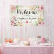 Banderoles Mariage Accueil Aquarelle Rose Fleur Rustique Bois
