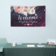 Mariage Welcome Banner Modèles - Elégante aquarelle Boho naturel plumes et écriture manuscrite sur Purple Sparkle Bokeh lumières Arrière - plan. Un Design Parfait Pour Votre Grand Jour ! Tous Les Style De Texte, Couleurs, Tailles Peuvent Être Modifiés En Fonction De Vos Besoins.