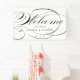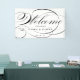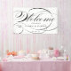 Bannière de bienvenue mariage avec texte de script sophistiqué. Le mot "bienvenue" est une IMAGE est imprimé à l'encre plate et ne peut pas être édité. Tous les autres textes peuvent être entièrement modifiés. Choisissez votre taille et customisez le texte, ou cliquez sur "Customiser plus loin" pour modifier la couleur et la taille ou le style de police arrière - plans.