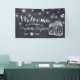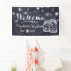 Mariage Welcome Banner Modèles - Elegant Mason Jars et String Lights sur Navy Blue Floral Linen Arrière - plan. Un design parfait pour votre grand jour. Tous les styles de texte, couleurs, tailles peuvent être modifiés selon vos besoins !