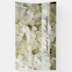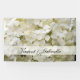 Dirigez vos invités vers votre jardin de fête de mariage ou la cérémonie de mariage et la réception avec la jolie Bannière Mariage Hydrangea White. Cette élégante bannière fleurie mariage personnalisée présente une photo florale d'une floraison d'hydrangée blanche.