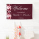 Faites l'accueil de vos invités mariages avec cette bannière de Mariage Floral Rouge Bourgogne Rose Aquarelle Blush. Cette bannière mariage de bienvenue présente des fleurs d'aquarelle bordeaux, rouges et roses rousses, qui montrent la beauté naturelle. Personnalisez-le avec vos propres informations et message pour la touche parfaite et spéciale.