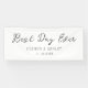 Mariage blanc bienvenue bannière ou panneau accroché au mur avec la citation "meilleur jour jamais" dans la calligraphie script, les noms du couple, et la date. Tout le texte est modifiable et peut être personnalisé avec un psaume, un poème, ou tout message que vous souhaitez ajouter pour cette occasion spéciale.