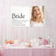 Personnalisez avec la définition et la photo de la mariée pour créer un cadeau unique pour les douches nuptiales, la bachelorette ou encore les fêtes et les mariages. Une façon parfaite de lui montrer à quel point elle est extraordinaire dans son grand jour et un gardien parfait pour le reste de sa vie. Conçu par Thisisnotme©