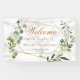 Moderne et tendance, cette bannière d'accueil mariage présente une fausse géométrie en cuivre agrémentée d'une végétation d'eucalyptus à l'aquarelle, sur une imitation de marbre blanc. Le texte est tout en cuivre correspondant. Copyright Invitations élégants. Tous droits réservés.