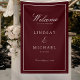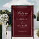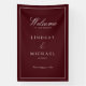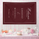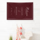 Bannière de mariage élégante royale bordeaux et blanc avec écriture manuscrite, vos noms, date et texte.