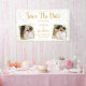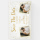 Partagez votre annonce de date avec ce panneau/bannière amusant et unique que vous pouvez tenir pour dire à tout le monde que vous avez défini la date. Le design comporte 2 photos et du texte personnalisé contre un arrière - plan blanc accentué de faux éclats de confettis de parties scintillant dorée. Amusant et festif mais élégant et chic - s'harmonise parfaitement avec autant de styles mariages d'aujourd'hui. Idéal pour se tenir debout pendant votre photo fiançailles ou pour être accroché pendant une fête de fiançailles.