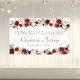 Cette étonnante bannière de mariage floral de Bourgogne profonde est conçue avec des fleurs vives dans des tons profonds de bordeaux et taupe avec des touches de branches claires et vert foncé. Le texte du script, à la fois en bordeaux et en taupe, comprend le texte : FÉLICITATIONS!, les prénoms de la mariée et de la chambre et la date du Mariage, sur un arrière - plan blanc souple.Pour personnaliser, utilisez simplement notre modèle facile pour remplacer l'exemple de texte par vos détails. Des cartes accessoires correspondantes sont disponibles pour cette collection de Mariages floraux de Bourgogne profonde. Bon appétit !