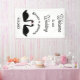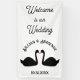 Cette étonnante bannière Mariage présente une image art numérique d'une paire de beaux cygnes noirs se faisant face et ressemblant à des baisers. Ils sont noirs avec les yeux et les becs rouges. Il y a du texte personnalisé pour que vous puissiez inclure les noms du couple heureux et la date du Mariage.