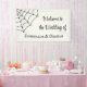 Bienvenue dans votre mariage ou autre événement spécial en style avec cette bannière facile à customiser. Le design de style gothique présente une illustration d'une toile d'araignée dans un coin. Le graphisme noir et le texte sont contre un arrière - plan blanc écru ou coquille d'oeuf.