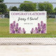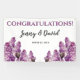 Une Bannière de Mariage Jardin de Printemps aux Lilas Suspendu conçue avec des fleurs de lilas délicates, sur fond blanc. Le texte comprend : Félicitations, les prénoms des mariés et la date du mariage. Pour personnaliser, insérez simplement votre texte dans notre modèle, en remplaçant l'exemple. N'oubliez pas de consulter la collection complète de Mariage Jardin de Printemps aux Lilas pour les Cartes et Accessoires de Réception assortis.