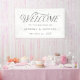 Banderole élégante d'accueil de mariage avec "Welcome" présentée dans un style typographique moderne noir : une combinaison de calligraphie et de lettrage serif. Personnalisez la bannière de mariage noir et blanc avec vos noms et votre date de mariage. Ce design est la bannière parfaite à utiliser lors de votre réception de mariage, fête de fiançailles, douche de couple, dîner de répétition ou autre événement spécial.
