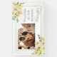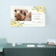 Des fleurs jaune aquarelle délicates décorent cette belle bannière mariage de l'après-midi d'été avec votre photo fiançailles. Le décor de mariage du jardin est accentué par une douce bordure rectangle vert sauge et des feuilles botaniques sous les élégantes pivoines ensoleillées entourant votre photo de couple. Floral et léger, parfait pour une cérémonie en plein air.