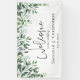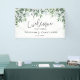 Belle bannière mariage rustique avec des noms personnalisés et date mariage. Elégant feuillage aquarellé de feuillage d'eucalyptus et de branches botaniques et de feuilles dans les tons sauge, vert et bleu poussiéreux. Ajoutez facilement les noms de votre mariée et de votre mariée et le jour de leur mariage. Voir notre collection pour des produits plus magnifiques avec ce design. Bannière Rustique Mariage Eucalyptus.